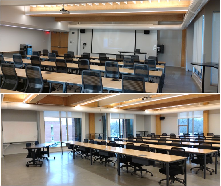 This room is permanently set up as a classroom. It includes tables and chairs for 48 participants. It is equipped with an erasable whiteboard, a projector and a sound system connected to the projector. You’ll need to bring your laptop, extension cords, HDMI cable and erasable pencil for the board. Small snacks are permitted, but for meals or dinner services, you may want to consider reserving the Park View Hall.