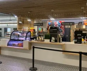Café Fairplay, managed by Brigade Volante, is located near the arenas and pools, offering a variety of food options.