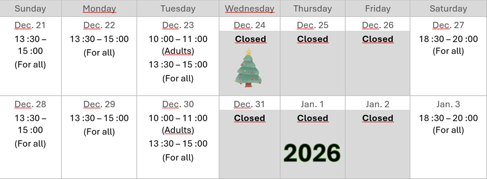 Schedule for park chalets – Winter schedule