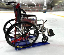 The Lugiglace is a support designed for wheelchairs, allowing individuals with reduced mobility to enjoy of skating on the ice. The participant must be accompanied by a skater who will push the device safely. Compatible with most wheelchair models, it is simple to use.