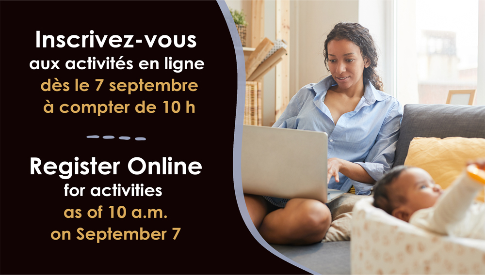 Inscrivez-vous en ligne dès le dimanche 7 septembre à compter de 10 h via le site de la bibliothèque.